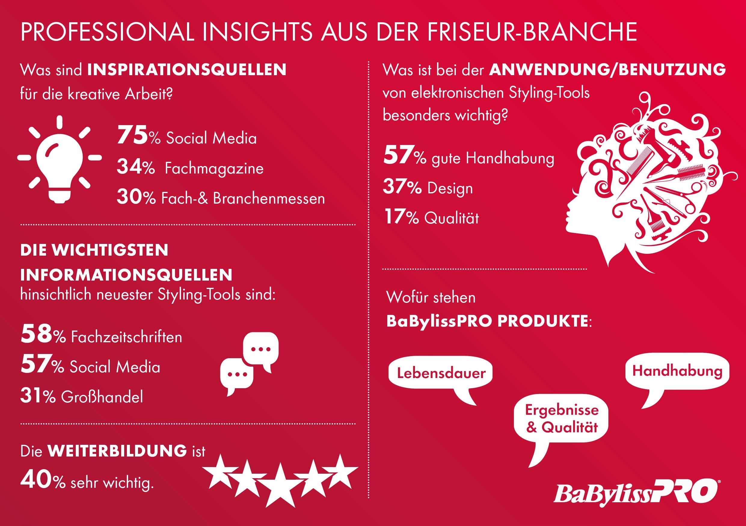 Spannende Insights aus der Friseur-Branche zeigt die Umfrage* von BaBylissPRO: Das Unternehmen hat Friseure und Barber zu Trends, Arbeitsweisen, Inspiration und Tools befragt, um einen tieferen Brancheneinblick zu bekommen